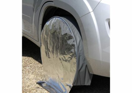 Für Caravans. Die Hülle verfügt über eine reflektierende Frontfläche damit die den Reifen schädigenden UV-Strahlen abgehalten werden, die Hitzeeinwirkung geringer ist und die Reifen nicht leiden. Somit altern die Fahrzeugreifen langsamer. Gute Passform durch dreidimensionale Verarbeitung. Die Hülle liegt auf der Lauffläche auf und kann nicht herunterrutschen. Eingearbeitete Ösen für Erdnägel dienen der sicheren Befestigung. Technische Daten: Fahrzeuge: Wohnwagen Achsen: Einachser Größe: 14, 635/185mm…