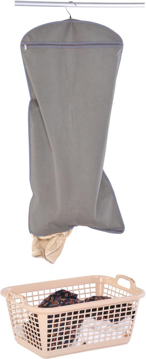Der Schmutzwäschesack verfügt über einen Hängebügel sowie einen Reißverschluss entlang der Unterkante für ein schnelles Entleeren. atmungsaktives Volumen Technische Daten: 48 x 97 cm Material: Nonwoven