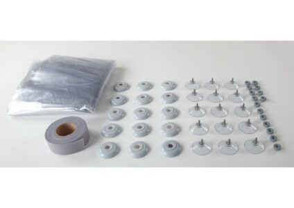 Dieses Thermomaterial, welches sich seit Jahren mit unseren Thermovorhängen bewährt hat, ist jetzt auch als SB-Set für den Selbstausbau lieferbar. Damit können Sie selbst z. B. Fenstermatten, Thermoisolierungen unterhalb des Schlafbereiches oder Abdeckungen herstellen. Das Material kann mit der Schere oder einem Messer passend geschnitten werden. Lieferumfang: Größe ca. 350 × 148 cm, 15 große Sauger á ø 40mm 20 Meter hellgraues Einfassband aus Polyester sowie Folie zur Abnahme einer Schablone.