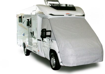 Frontschutzplane für Reisemobile, aus TYVEK® SUPRA-FC. Schützt das Fahrzeug vor Vereisung und Schnee, sowie den Innenraum vor Sonneneinstrahlung und Erwärmung. Dadurch reduziert sich im Sommer die Innenraumtemperatur. Bei dieser neuen Ausführung werden die Seitenscheiben ebenfalls geschützt und ungewünschte Einblicke in das Fahrzeug verhindert. Die Frontschutzplane schützt die Fahrzeuglackierung vor Ausbleichen und Verunreinigungen etwa durch Vogelkot. Sie ist leicht zu befestigen und wird einfach in…