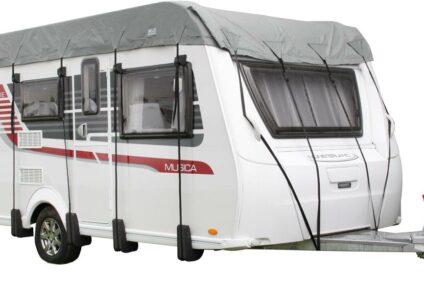 Die atmungsaktive Schutzplane ist aus 3-lagigem SFS-3 Nonwoven Material hergestellt und zeichnet sich durch eine gute Reißfestigkeit und geringes Gewicht aus. Mit ihrer frei wählbaren Länge passt sie universell für Wohnwagen und Reisemobile. So kann auf Wunsch nicht nur das Dach, sondern auch der Bug- und/oder Heckbereich vor Regen, Schmutz, Eis und Schnee und Verunreinigung durch Vögel und Bäume geschützt werden. Für die Anbringung ist die Plane ringsum mit dreieckigen Laschen versehen, an denen die im…