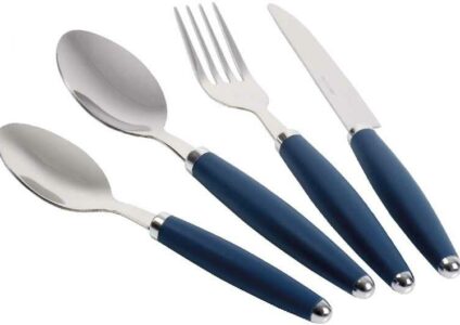 Der ideale Reisebegleiter für kleine Gruppen und Familen bis zu 4 Personen. Technische Daten: Material: 18/0 Edelstahl Farbe: dunkelblau Lieferumfang: 4 Messer 4 Gabeln 4 Esslöffel 4 Teelöffel