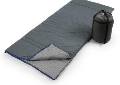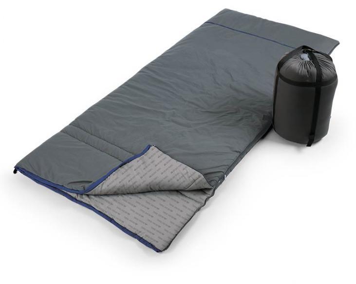 Dank Reißverschluß als Decke nutzbar, mit zusätzlichem Windschutz im Innenteil. Extra weiches Material Obermaterial. Technische Daten: Obermaterial: 210T Polyester Futter: 100% Baumwolle, Füllung: 175 g/m² seidenähnliche Baumwolle Farbe: Grau/Dunkelblau Größe: 210 x 90 cm Packmaß: Ø 30 x 46 cm
