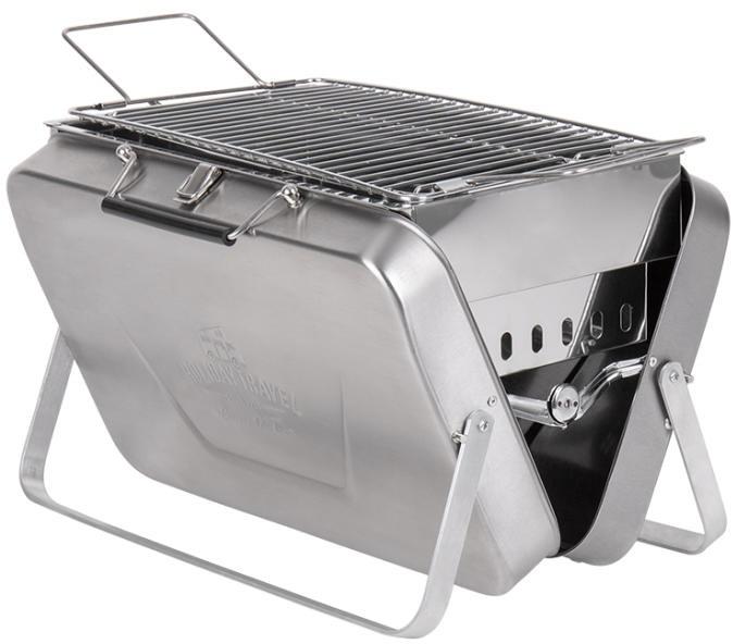 Koffergrill aus der Trendserie HOLIDAY TRAVEL. Dieser Koffergrill wird mit Holzkohle befeuert und ist in seinem praktischen Kofferformat einfach zu transportieren. Er ist in wenigen Sekunden aufgebaut und einsatzbereit. Zum Befüllen mit Holzkohle lässt sich der Rost zur Seite klappen. Dieser Grill ist in wenigen Sekunden aufgebaut! Platzsparend durch handliche Größe Im Kofferformat zum einfachen Transportieren Technische Daten: Grillfläche: 33 x 20 cm Koffergröße geschlossen: 37 x 24 x 8 cm Gewicht: 2,5…