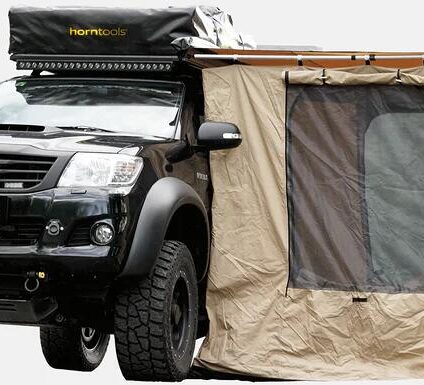 Das Einhängezelt Innenzelt für die Markise Straight von Horntools erweitert Ihre Campingmarkise um einen komfortablen und geschützten Innenraum.Eine sinnvolle Ergänzung zur Markise ist das Einhängezelt.Der damit gewonnen Zusatzraum kann als Schlaf- oder Stauraum genutzt werden.Die zwei seitlichen Fenster sind wie der Eingang mit einem Moskitonetz geschützt. Der Boden ist wasserdicht.