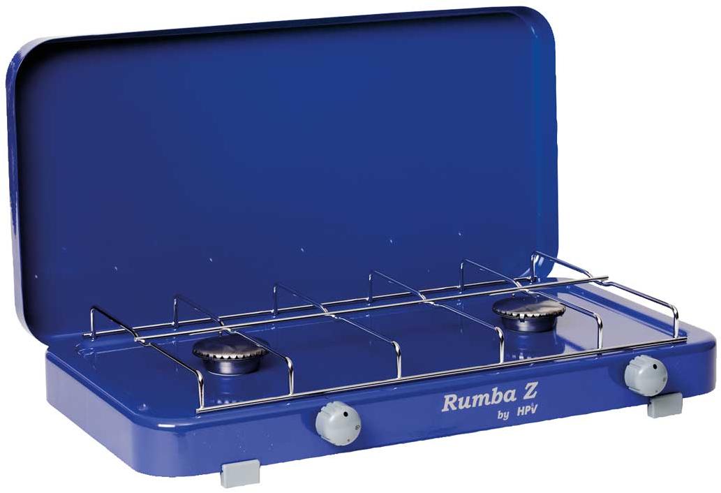HPV Rumba Gaskocher, 2-flammig, 50mbar, mit Zündsicherung u. Piezo, blau