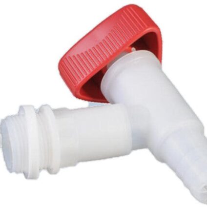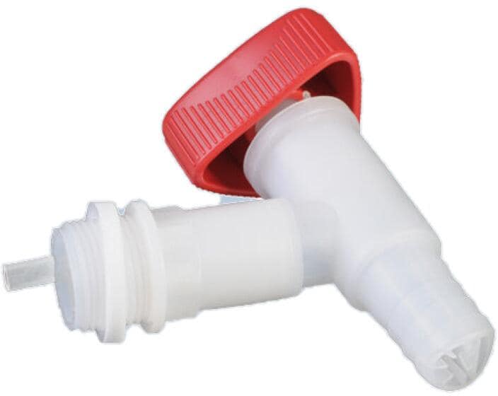 Ablasshähne PROFI ausgestattet mit 3/4 Zoll Außengewinde zum kontrollierten Ablassen von Flüssigkeiten aus Fässern und Kanistern, naturfarben aus bruchsicherem und lebensmittelbeständigem Polyethylen mit Tüllenanschluss für einen Schlauch sehr gute chemische Beständigkeit gegen Säuren, Laugen und weitere Chemikalien mit rotem Drehgriff und weißer PE-Schaum-Dichtung schnelles, gluckerfreies Auslaufen durch integrierte Belüftung um 360° drehbar in jede gewünschte Position Technische Daten: druckbeständig…