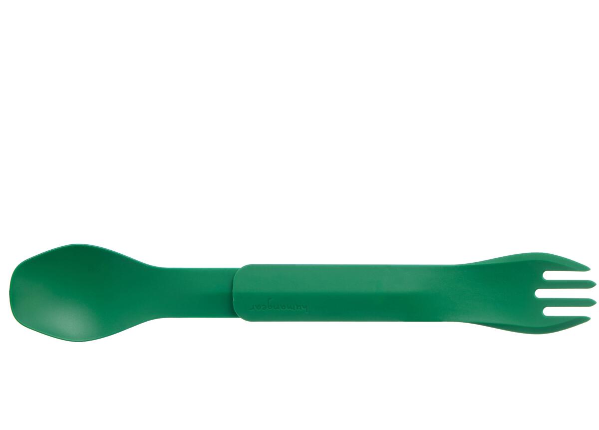 Aus Biokunststoff hergestellt kann die Gabel-Löffel-Kombination getrennt und in zwei Teile benutzt werden. Gegenläufig zusammengesteckt sind sie lang genug, um auch in den hohen Tüten der Travel-Fertiggerichte gut zu funktionieren oder mal aus dem Topf essen zu können. Zum Transport können sie zusammengesteckt und dann sehr klein und klapperfrei mit auf jede Reise gehen. Der Löffel hat sehr weiche und mundgerechte Kanten, die Gabel verfügt über genügend ‚Spitze‘ für ein vernünftiges Mahl. Auf eine…