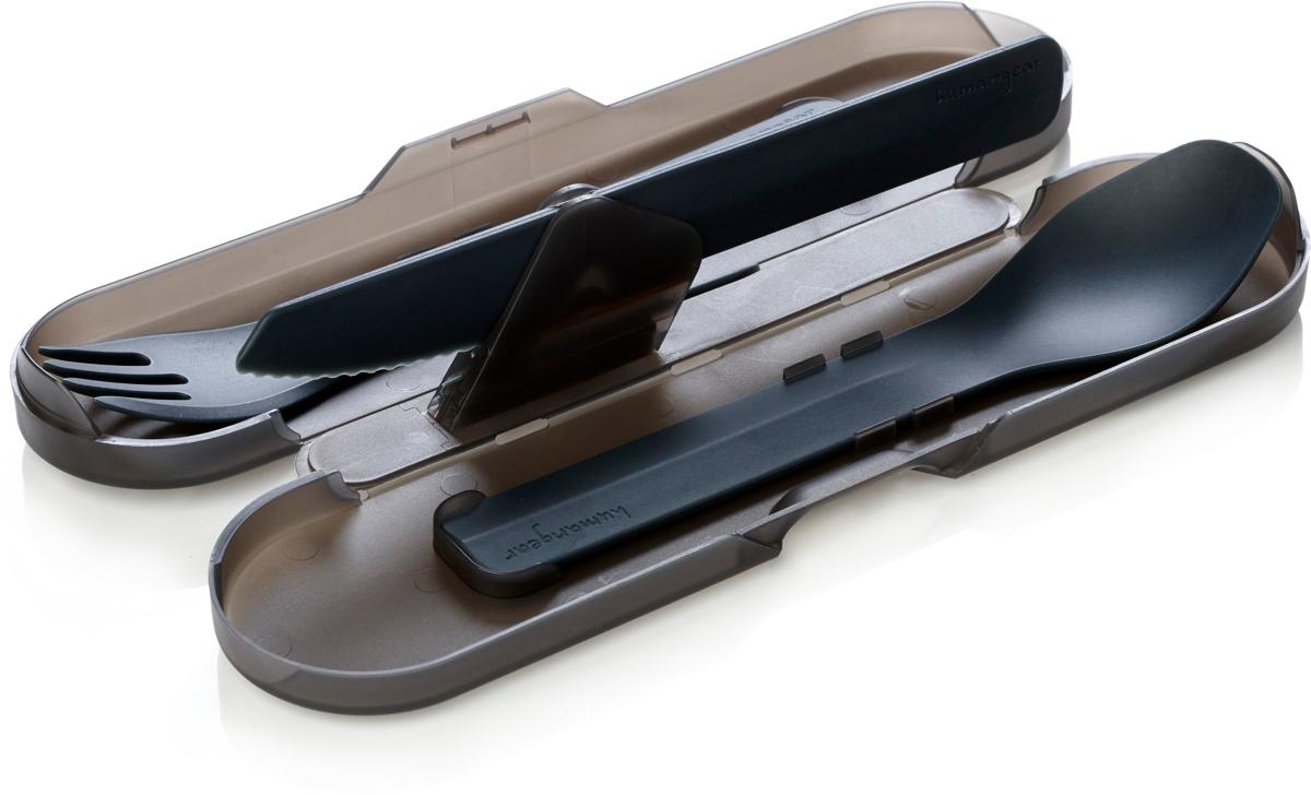 Reisebesteck in neuer Form und Art: die kompakte Transportdose bietet geöffnet Zugriff auf jedes einzelne der Teile und schützt das Set hygienisch. Beinhaltet sind im Trio je eine Gabel mit vernünftigen Spitzen und einer Teil-Kante (für weichere Lebensmittel), ein Löffel mit sehr weichen und mundgerechten Kanten sowie ein Messer mit gewellter Klinge. Dadurch wird eine gute Schneidleistung erreicht, die auch für zarteres Fleisch vollkommen ausreichend ist. Integriert im Messer ist ein Kapselheber. Als…