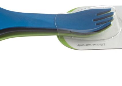 Die kleine Ausgabe der Gabel-Löffel-Kombination. Perfekt für Gewichtssparer aber auch für Kinder. Auch hier sind beide Enden für die jeweilige Funktion optimal gestaltet. Der Löffel hat weiche und mundgerechte Kanten. Die Gabel hat funktionelle Spitzen. Auf eine Messerfunktion wurde bewusst verzichtet, um beim Essen keine Gefährdung des Mundbereichs herbeizuführen. Meist gehört ein scharfes Messer ohnehin zur Standardausrüstung. Mit der Gabelseite kann aber durchaus die Kartoffel oder ein Spiegelei…