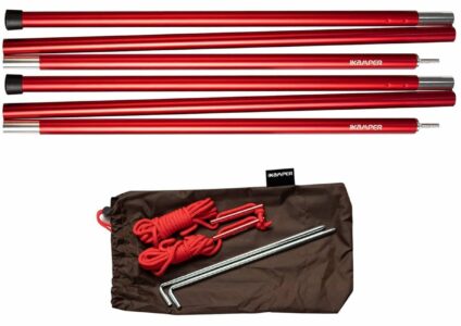 Mit dem Fenster Aussteller Set kann man eine Tür des Anbauzeltes aufspannen, welche dann als extra Sonnenschutz genutzt werden kann. Lieferumfang: 1 x Beutel 2 x Stangen 2 x Seile 2 x Heringe Hinweis: Um alle Türen des Vorzeltes gleichzeitig aufzuspannen, benötigt man 3 Sets.