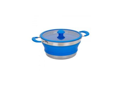 Platzsparender Falttopf aus Edelstahl und Silikon mit Glasdeckel. Für alle Herdarten inklusive Induktion geeignet. Der Kochtopf inklusive Glasdeckel lässt sich nach Gebrauch vollständig zusammenfalten. Sicherheitsdeckel mit Silikonrand (kein Klappern) und Dampföffnung. Technische Daten: Gewicht: 1100 g Volumen: 4 L Material: Edelstahl, Silikon Maße (⌀ x H): 26 x 12,6 cm Packmaß: 26 x 26 x 12,6 cm Farbe: blau