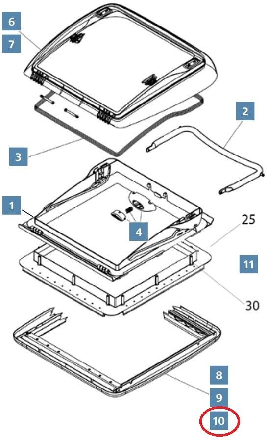 Innenrahmen für Mini Heki FLFarbe: cremeweißAbbildung Nr. 10 (gem. Explosionszeichnung)Dometic Art. Nr.: 4460004067