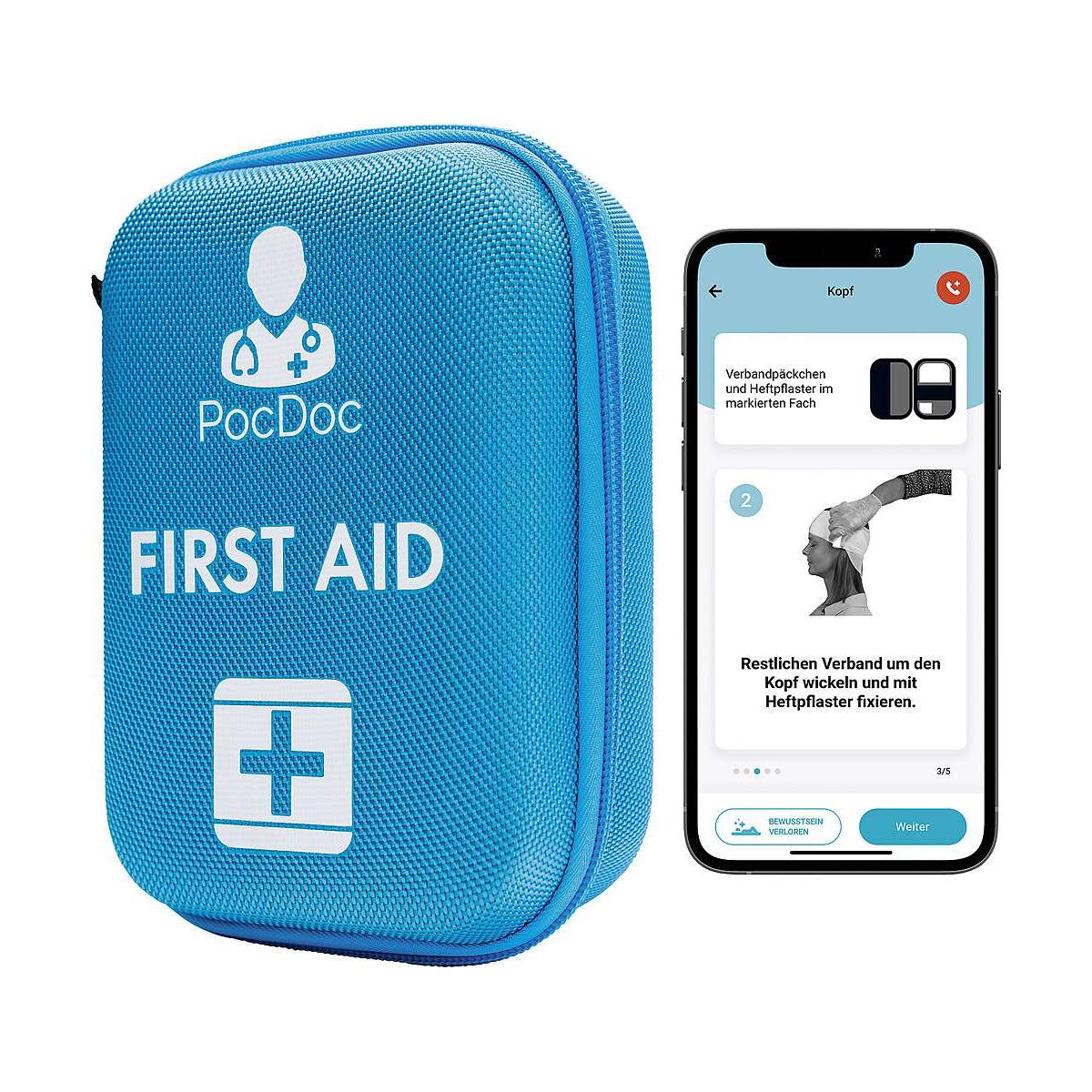 PocDoc Reise-Erste-Hilfe Set, Outdoor mit Erste-Hilfe App.Intelligenter Verbandkasten für die Erstversorgung. Das First Aid Kit ist für jede Aktivität wie Skifahren, Snowboarden, Klettern, Wandern, Fahrrad fahren, Mtb, Motorradfahren oder Camping geeignet. Der kleine Verbandkasten passt in jeden Koffer und Rucksack. Die App führt Sie Step by Step durch die Behandlung und zeigt wo sich das Verbandmaterial im Notfallset befindet. Der Verbandkasten – Hochwertiges, robustes, wasserabweisendes EVA Design,…
