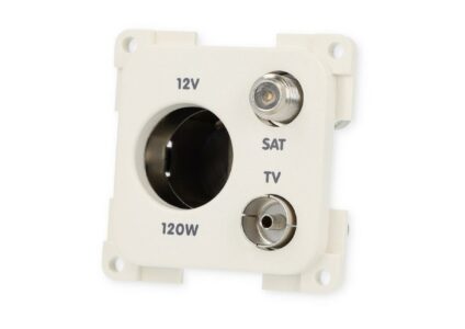 Kombisteckdose mit 12 V Norm-Steckdose, Koaxialsteckdose und F-Stecker Anschluss für System 10.000 Alles optimal aufeinander abgestimmt Einfache und sichere Montage mit Zentrierhilfe für exakte Positionierung und Montage zum Innenausbau für Wohnwagen, Schiffe und Boote Technische Daten: Farbe: weiß Maße (B x T x H): 6 × 4 × 6 cm Gewicht: 49 g Schraubanschluss Lieferumfang: 1 Stück Notwendiges Zubehör: Berührungsschutzdose