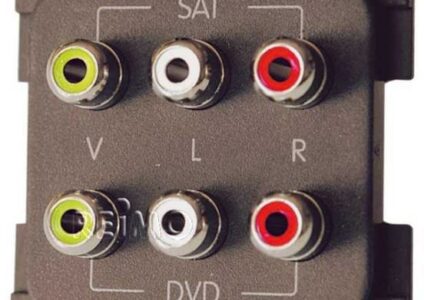 Kombisteckdose mit Anschluss für Chinch AV & Audiomodul für System 10.000 Alles optimal aufeinander abgestimmt Einfache und sichere Montage mit Zentrierhilfe für exakte Positionierung und Montage zum Innenausbau für Wohnwagen, Schiffe und Boote Technische Daten: Farbe: Braun Maße: 52,9 × 52,9 6 Chinch-Anschlüsse für Bild und Tonübertragung z.B. vom Receiver zum DVD/TV Lieferumfang: 1 Stück Notwendiges Zubehör: Abdeckrahmen Berührungsschutzdose