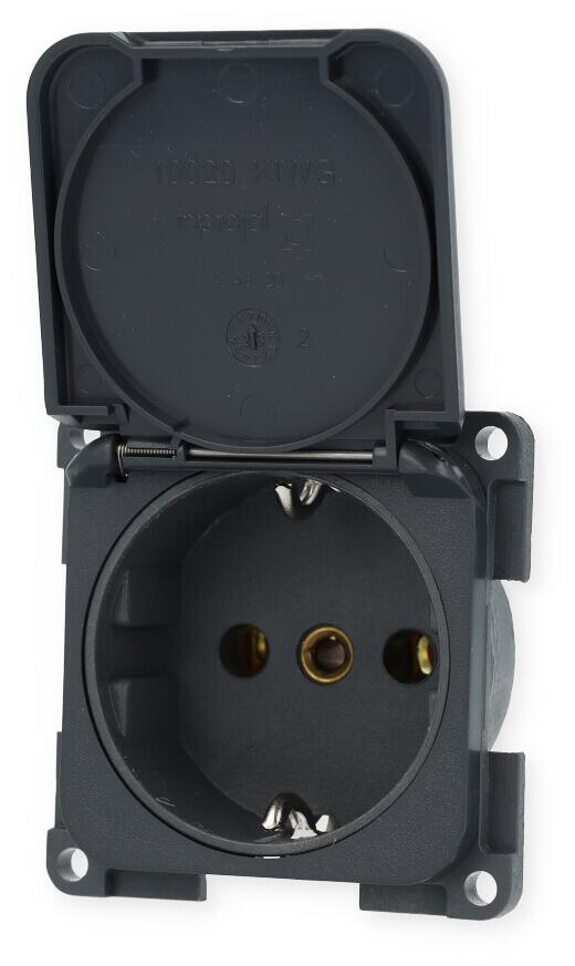 Inprojal System 10.000 Schuko Steckdose mit Klappdeckel, 230V, schiefergrau