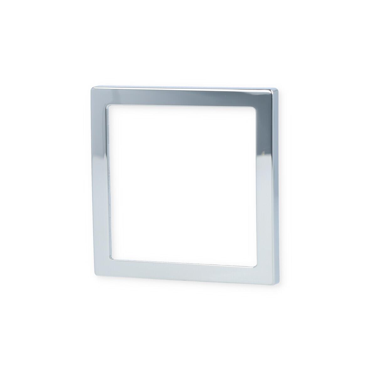 Abdeckrahmen System 20.000 vertikaler oder horizontaler Einbau galvanische Oberfläche Technische Daten: Farbe: Chrom Hochglanz Rahmen: 1-fach Maße: 62 x 62 mm Lieferumfang: 1 Stück Passendes optionales Zubehör: Distanzrahmen (zur Reduzierung der Einbautiefe)