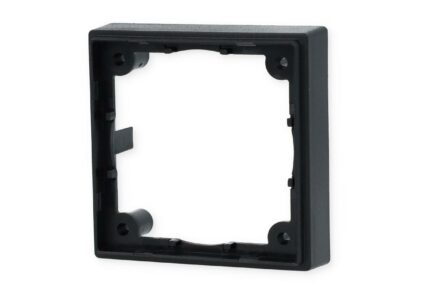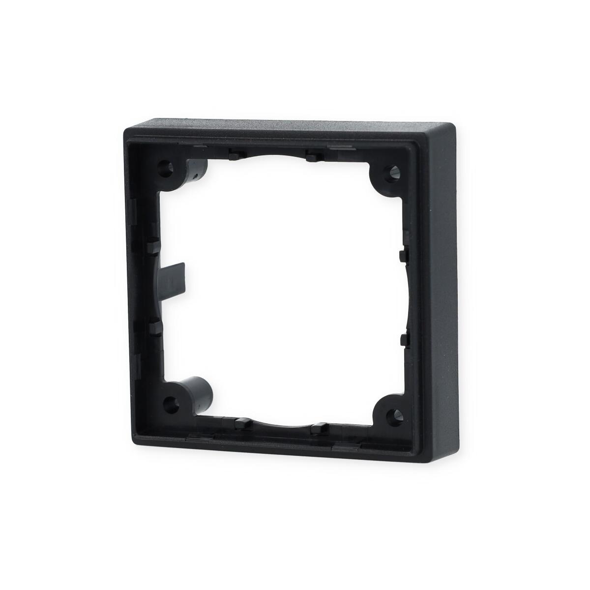 Distanzrahmen System 20.000 vertikaler oder horizontaler Einbau zur Reduzierung der Einbautiefe mit Zentrierhilfe für exakte Positionierung und Montage Technische Daten: Farbe: Schwarz Aufbauhöhe: 12 mm Rahmen: 1-fach Maße: 63,4 x 63,4 mm Lieferumfang: 1 Stück Passendes Zubehör: Abdeckrahmen