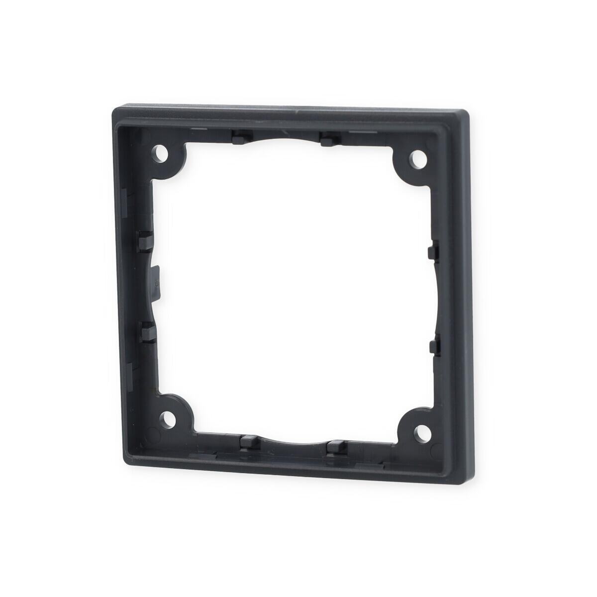 Distanzrahmen System 20.000 vertikaler oder horizontaler Einbau zur Reduzierung der Einbautiefe mit Zentrierhilfe für exakte Positionierung und Montage Technische Daten: Farbe: Schiefergrau satiniert Aufbauhöhe: 3 mm Rahmen: 1-fach Maße: 62,5 x 62,5 mm Lieferumfang: 1 Stück Passendes optionales Zubehör: Abdeckrahmen
