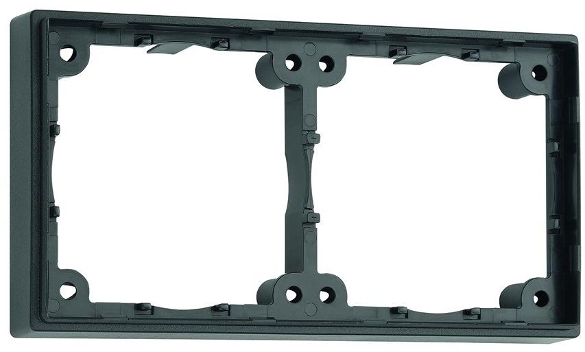 Distanzrahmen System 20.000 vertikaler oder horizontaler Einbau zur Reduzierung der Einbautiefe mit Zentrierhilfe für exakte Positionierung und Montage Technische Daten: Farbe: Schwarz Aufbauhöhe: 12 mm Rahmen: 2-fach Maße: 63,4 x 116,4 mm Lieferumfang: 1 Stück Notwendiges Zubehör: Berührungsschutzdose 1-fach Passendes Zubehör: Abdeckrahmen