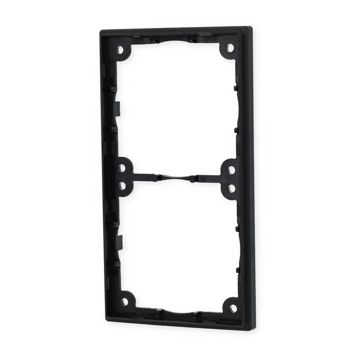 Distanzrahmen System 20.000 vertikaler oder horizontaler Einbau zur Reduzierung der Einbautiefe mit Zentrierhilfe für exakte Positionierung und Montage Technische Daten: Farbe: Schiefergrau schwarz Aufbauhöhe: 3 mm Rahmen: 2-fach Maße: 62,5 x 115,5 mm Lieferumfang: 1 Stück Passendes optionales Zubehör: Abdeckrahmen