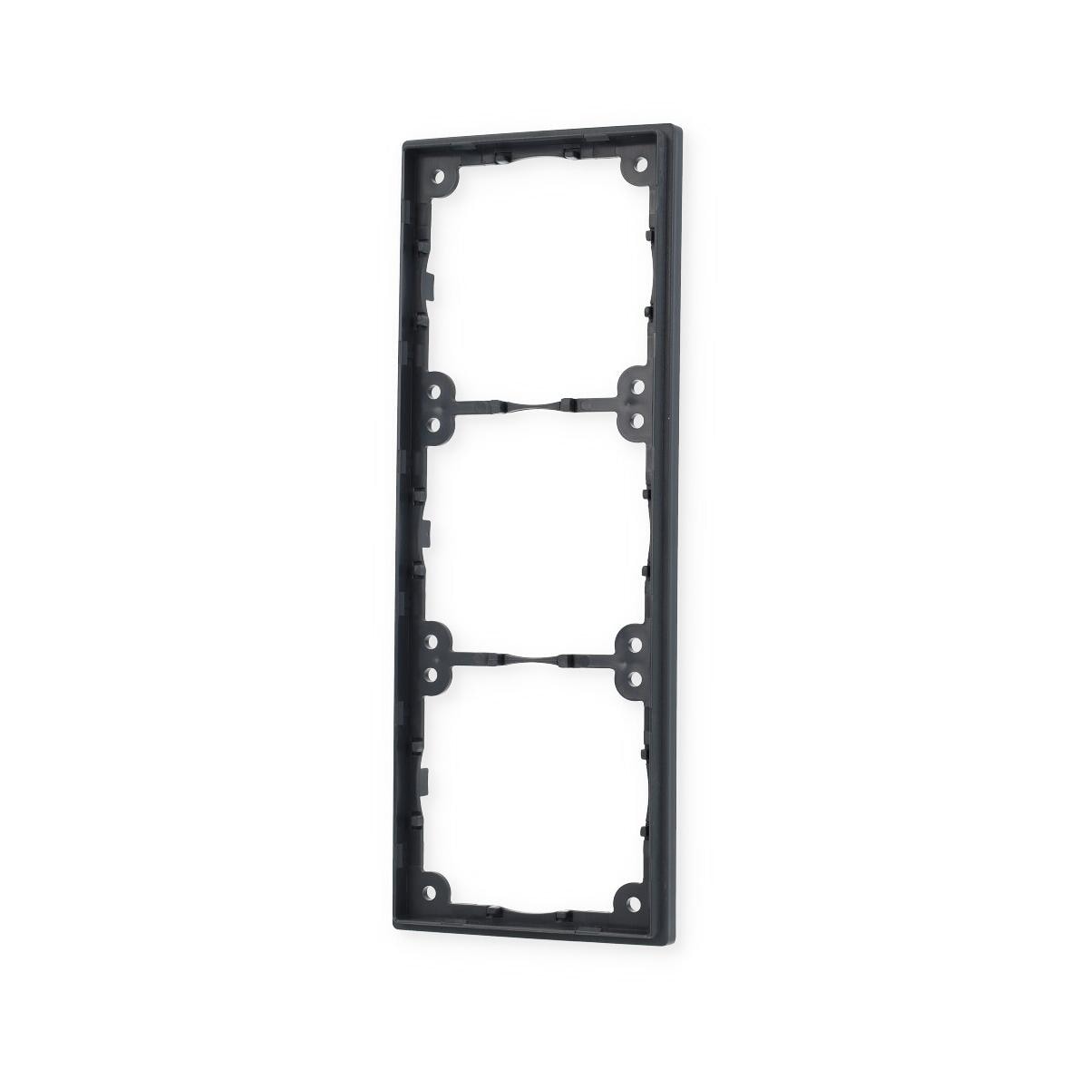 Distanzrahmen System 20.000 vertikaler oder horizontaler Einbau zur Reduzierung der Einbautiefe mit Zentrierhilfe für exakte Positionierung und Montage Technische Daten: Farbe: Schiefergrau Aufbauhöhe: 3 mm Rahmen: 3-fach Maße: 62,5 x 168,5 mm Lieferumfang: 1 Stück Passendes optionales Zubehör: Abdeckrahmen