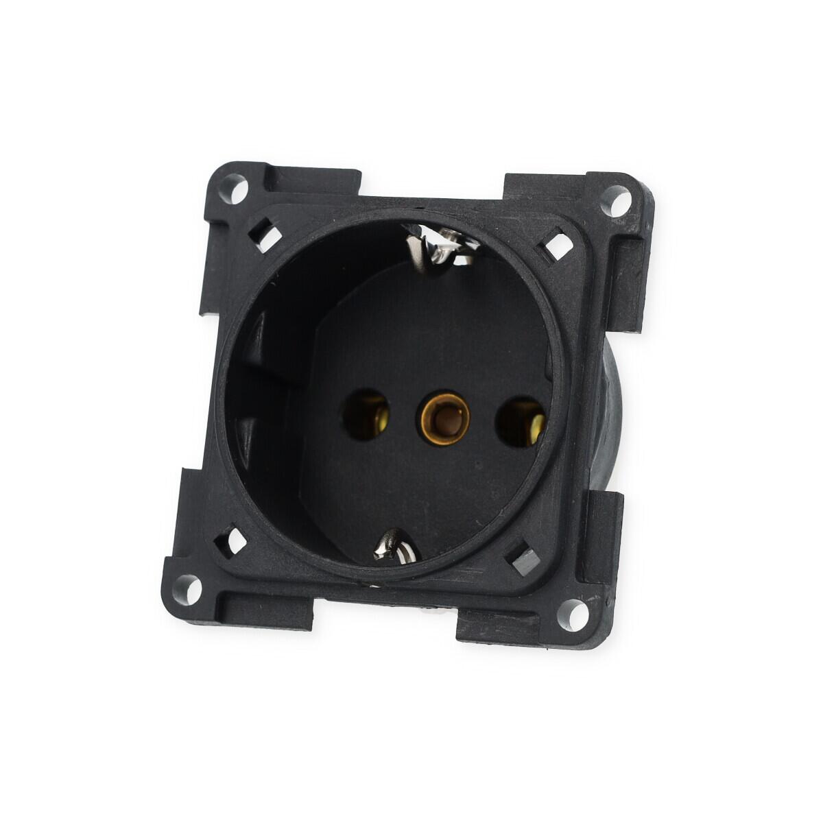 Schuko Steckdose System 20.000 vertikaler oder horizontaler Einbau Einfache und sichere Montage zum Innenausbau für Wohnwagen, Schiffe und Boote Technische Daten: Farbe: Schwarz Maße: 62 x 62 mm 230V 16 A max. Lieferumfang: 1 Stück Passendes optionales Zubehör: Distanzrahmen (zur Reduzierung der Einbautiefe) Zentralplatte (zur Zentrierhilfe für exakte Positionierung und Montage) Abdeckrahmen