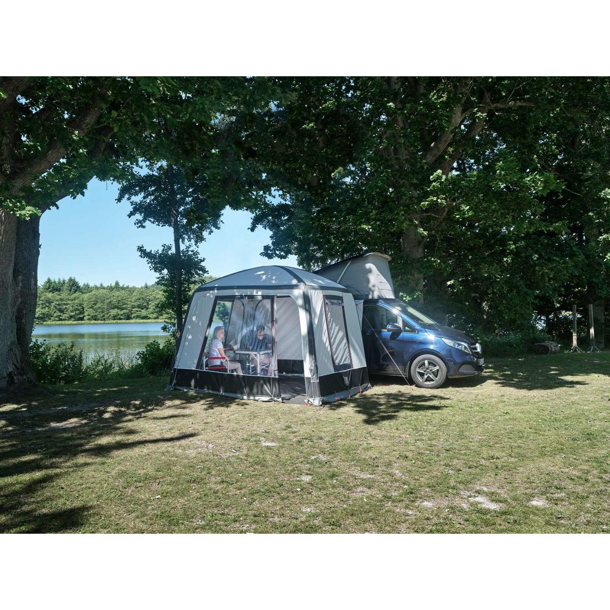 Das Luft- Busvorzelt mit Verbindung zwischen Fahrzeug und Zelt! In einem Campingbus kann es, für einen kompletten Urlaub, etwas eng werden. Mit dem Isabella Air X-Tension wird Ihre Wohnfläche um ganze 8,25 m2 erweitert und man erhält einen geräumigen Wohnbereich mit einem sehr angenehmem Raumgefühl. Zwei Seitenteile und natürlich die Rückwand können mit Hilfe der Reißverschlüsse problemlos entfernt werden, um dieses Luft- Busvorzelt in ein Sonnendach, ggf. mit Seitenteil, zu verwandeln. Isabella Air…