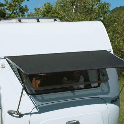 Fenstermarkise mit Sonnenfilter. Schützt vor der Sonne aber hält die Sicht von innen frei. Fenstermarkise mit Sonnenfilter, welches die Sonneneinstrahlung abhält, jedoch freie Aussicht von innen gewährt. Die Markise ist in zwei Breiten erhältlich: 190 cm oder 215 cm in der Farbe anthrazit. Die Konstruktion des Gestänges ist sehr einfach und passt zu fast allen Wohnwagen. Mit dem Bandit ™ Softgrip-Handgriff ist die Sonnenmarkise schnell und leicht montiert. Einfache Montage Das „Band-It“ System…