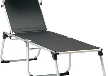 Komfortable Sonnenliege mit verstellbarem Kopfteil. leicht zusammenzufalten wetterbeständiger Bezug robustes Aluminium-Gestell Technische Daten: Farbe: anthrazit Belastbarkeit: 120 kg Material: 60 % PVC Polyvinylchlorid, 40 % PES Polyester Gewicht: 5,7 kg Abmessungen (L x B x H): 200 x 59 x 48 cm Packmaß: 83 x 61,5 x 23 cm Lieferumfang: 1 x Sonnenliege inkl. Sonnenschutzdach