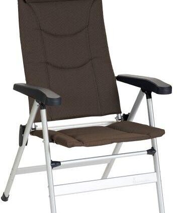 Komfort-Campingstuhl mit 8-fach verstellbarer Rückenlehne und Kopfpolster, welches man in der Höhe verschieben kann.mit Kopfpolster, abnehmbar und höhenverstellbarPolster ist Schmutz- uns WasserabweisendStabiles AluminiumgestellTechnische Daten:Ausführung: gepolstertMaterial: 100 % PES Polyester, AluminiumBelastbar bis: 120 kgFarbe: braunSitzhöhe: 47 cmMaße (B x T x H): 59 × 80 × 120 cmPackmaß: 118 x 63 x 14 cmGewicht: 5,5 kgLieferumfang:1 Thor Campingstuhl