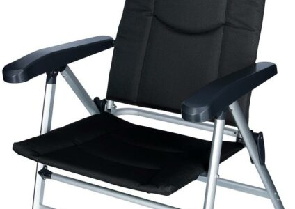 Komfort-Campingstuhl mit 8-fach verstellbarer Rückenlehne und Kopfpolster, welches man in der Höhe verschieben kann. mit Kopfpolster, abnehmbar und höhenverstellbar Polster ist Schmutz- uns Wasserabweisend Stabiles Aluminiumgestell Technische Daten: Ausführung: gepolstert Material: 100 % PES Polyester, Aluminium Belastbar bis: 120 kg Farbe: dunkelgrau Sitzhöhe: 47 cm Maße (B x T x H): 59 × 80 × 120 cm Packmaß: 118 x 63 x 14 cm Gewicht: 5,5 kg