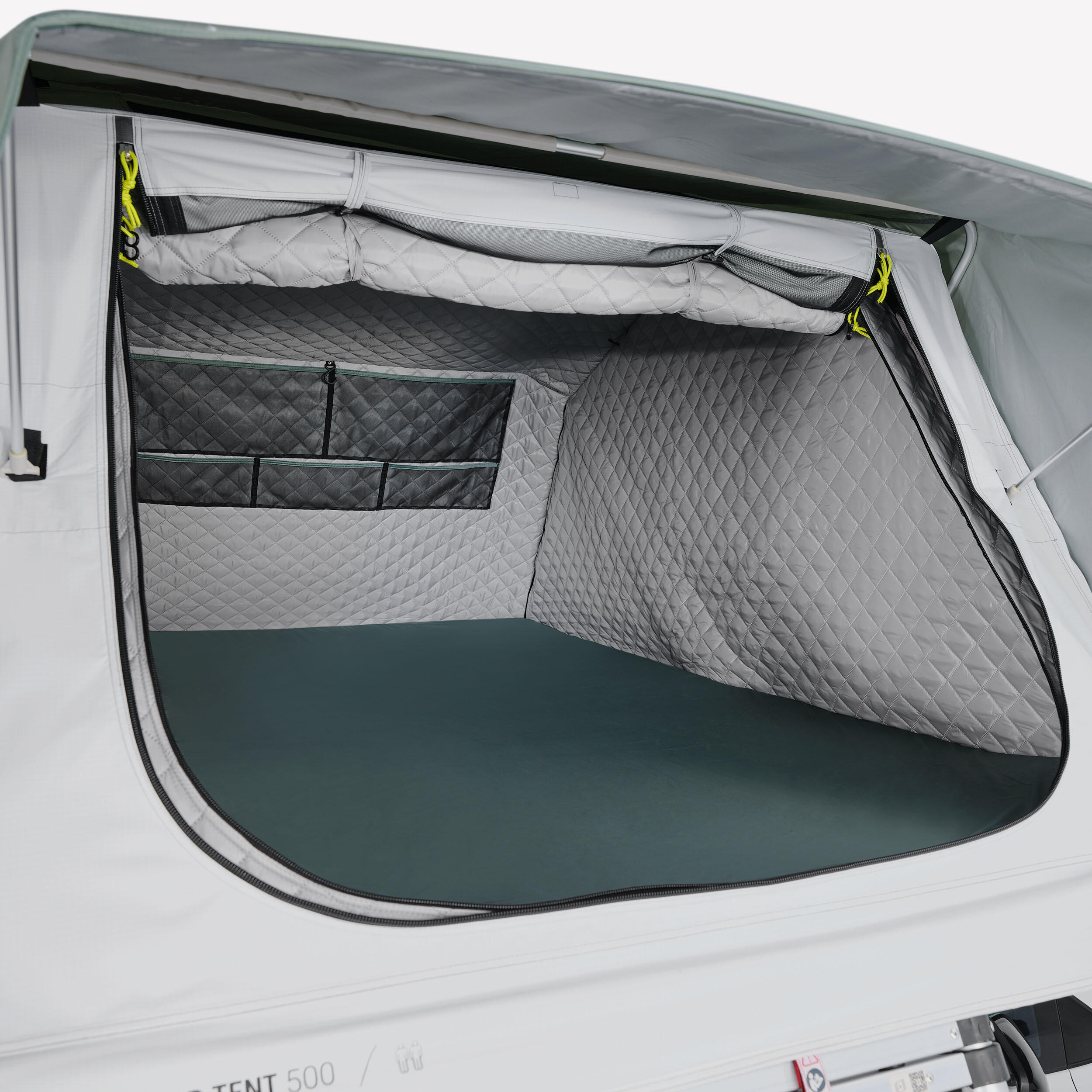 Das 2 mm dicke isolierende Gewebe kann an den inneren Rahmen des Dachzelts MH500 Fresh&Black 2 Personen (Ref.: 8642422) geclipst werden und sorgt so für eine zusätzliche Isolierung gegen die Kälte. Schneller Aufbau mit Clips |Kompatibel mit Dachzelt MH500 Fresh&Black 2P (Ref. 8642422)