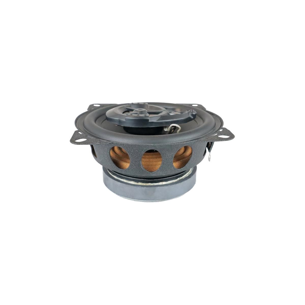 Das 2-Wege Rearsystem vollendet den Wohnbereich mit optimalem Raumklang. Für eine stark verbesserte Grundtonwiedergabe sorgen zwei 100 mm Coaxial-Lautsprecher. Inkl. Montagering und Abdeckgitter. Technische Daten: Durchmesser Chassis: 100mm Musikbelastbarkeit (RMS): 60 Watt Maximale Leistung: 120 Watt Impedanz: 4 Frequenzgang: 80-20.000 Hz Mechanische Güte: 3,11 Qms Elektrische Güte: 1,96 Qes Gesamtgüte: 1,2 Qts Wirkungsgrad 1W/1m: 83db Besondere Merkmale: Polypropylen-Membrane, hochwertige Gummisicke…