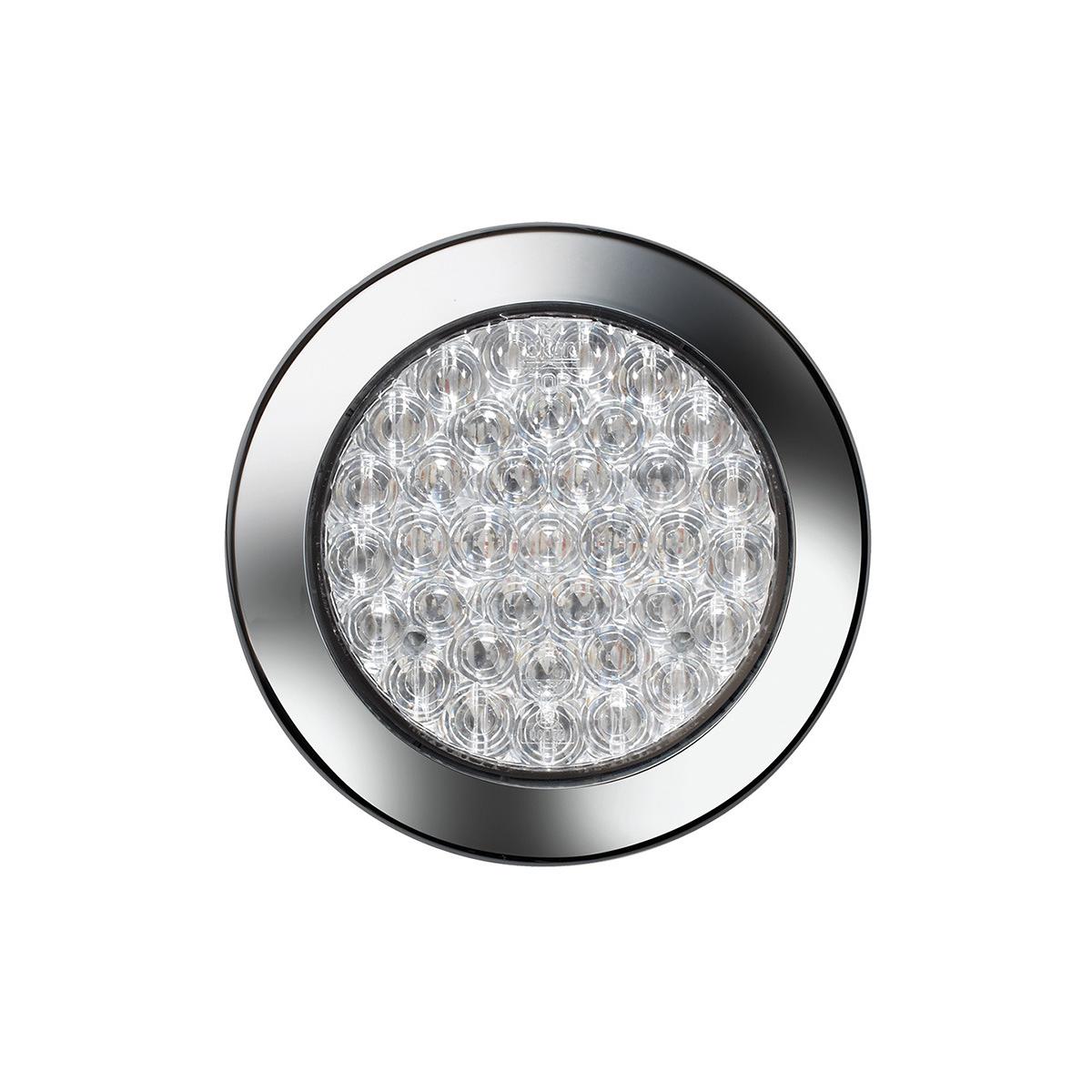 Die LED-Leuchten der Serie 727 sind anschlussfertig, wasserdicht vergossen und verfügen über ein Anschlusskabel von 500 mm Länge. Sie sind für den Einbau vorgesehen. Der Chromring verdeckt die darunter befindlichen 3 Öffnungen für die Verschraubung. Technische Daten: Funktionen: Blinkleuchte Spannung: 12 V Leistung: 3 W Material: PMMA / ABS Farbe: klar Gewicht: 0,16 kg IP – Schutzart: IP 67 Homologation: E2-020711