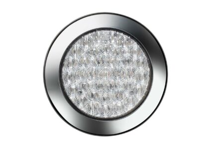Die LED-Leuchten der Serie 727 sind anschlussfertig, wasserdicht vergossen und verfügen über ein Anschlusskabel von 500 mm Länge. Sie sind für den Einbau vorgesehen. Der Chromring verdeckt die darunter befindlichen 3 Öffnungen für die Verschraubung. Technische Daten: Funktionen: Blinkleuchte, Bremsleuchte, Schlussleuchte Spannung: 12 V Leistung: 3 / 4 / 0,5 W Material: PMMA / ABS Farbe: klar Anschluss: Kabel 500 mm Gewicht: 0,16 kg IP – Schutzart: IP 67 Homologation: E2-07013