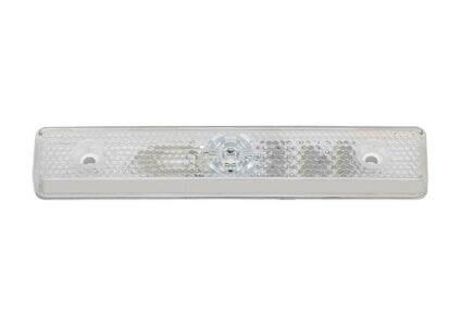 LED-Begrenzungsleuchte, Varianten mit und ohne integriertem Rückstrahler (12 V) mit LEDs in flacher Bauweise. Aufbau vertikal oder horizontal mit Flachsteckzungen Technische Daten: Lochabstand: 100 mm Kabellänge: 250 mm Spannung: 12 V Leistung: 0,6 W Einbauort: vorn Material: PMMA / ABS Farbe: klar Produktmaß:140 x 25 x 12 mm Gewicht: 0,05 kg IP – Schutzart: IP 67 Homologation: E1-3374