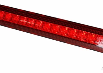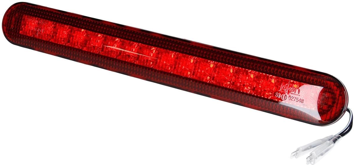 Die Zusatzbremsleuchten der Serie 05/06 mit SMT-LEDs sind anschlussfertig, wasserdicht vergossen, verfügen über ein Anschlusskabel von 200 mm und sind für den Einbau vorgesehen. 16 Leuchtdioden wasserdicht vergossen und anschlussfertig Durch Abdeckkappen verdeckte Schraublöcher Technische Daten: Spannung: 12 V Leistung: 1 W Kabellänge: 200 mm Maße L330 x H42 x T34/24 mm Gewicht: 0,18 kg Farbe: rot IP – Schutzart: IP 67 Homologation: S3 E13-0235218