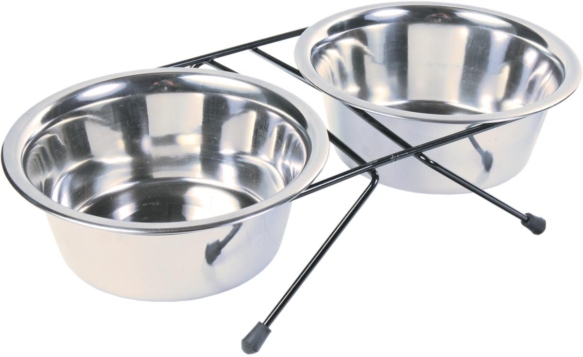 Napfset bestehend aus zwei Edelstahlnäpfen. Rostfrei Mit Halter Rutschfest Spülmaschinengeeignet Technische Daten: Maße Näpfe: 0,75 l/ø 15 cm Halter: Metall, pulverbeschichtet, schwarz