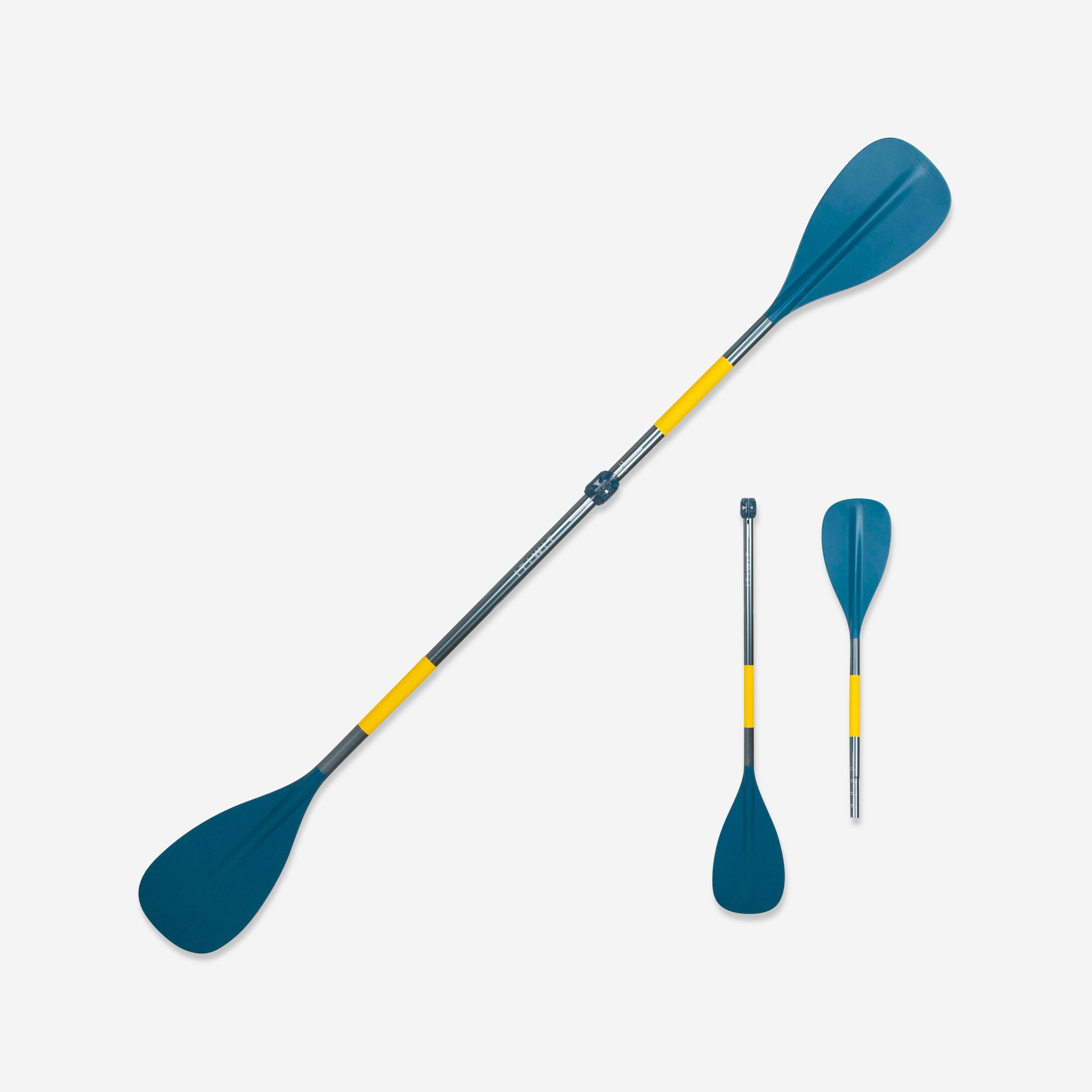Ideales Kinder-Paddel für Kanu-/Kajaksport in ruhigen Gewässern. Leichte Handhabung durch verstellbare Größe und einen Griffdurchmesser. der für Kinder ab 1.20 m geeignet ist. Ideales Gewicht für eine kleine Person: 890 g|Verstellbare Paddellänge: 170 bis 185 cm|Farbiger Grip. um die Hände richtig zu positionieren und für besseres Greifen|Durch die Größe des Paddelblattes ist der Wasserwiderstand für Kinder ideal. |Kann als Einfach-Paddel (Kanu) oder Doppel-Paddel (Kajak) benutzt werden.
