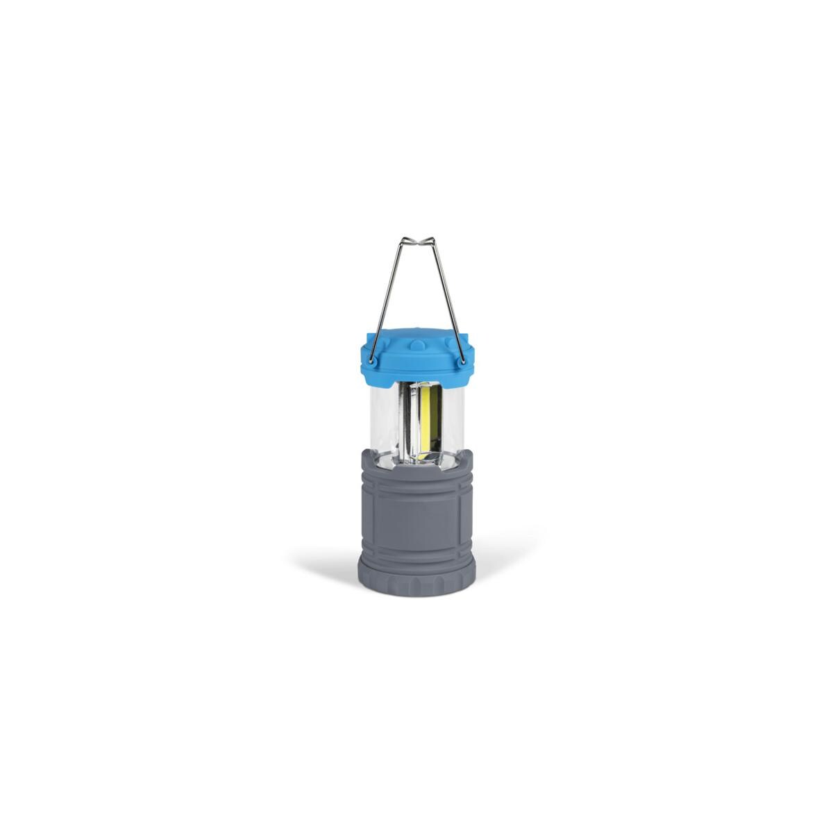 Mit dieser Campinglaterne ist Ihr Stellplatz stets gut ausgeleuchtet. Neue COB-Technologie COB steht für „Chip on Board“ und emittiert einen helleren, breiteren und weiter reichenden Lichtkegel. 3 superhelle COB LEDs Ein- und Ausschalten durch Herausziehen bzw. Herunterschieben der Leuchte weißes Licht Betrieb mit 3 x AA Batterien (nicht im Lieferumfang enthalten) Technische Daten: Länge: 87 mm Breite: 87 mm Höhe: 247 mm Gewicht: 230 g Farbe: blau