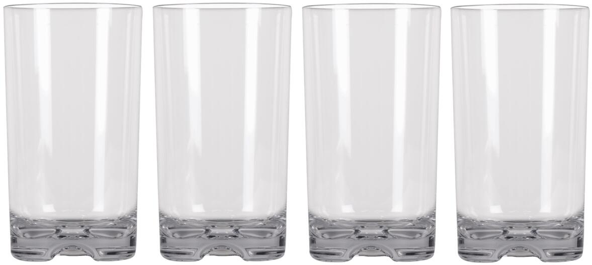 Lehnen Sie sich nach einem Tag voller Abenteuer in der Natur in Ruhe zurück und genießen Sie Ihr Lieblingsgetränk. Besonders fein: aus strapazierfähigem Acryl gefertigt, das sich wie echtes Glas anfühlt und auch so aussieht. Technische Daten: Fassungsvermögen: 420 ml Material: Acryl Gewicht: 500 g Lieferumfang: 4 x Trinkglas