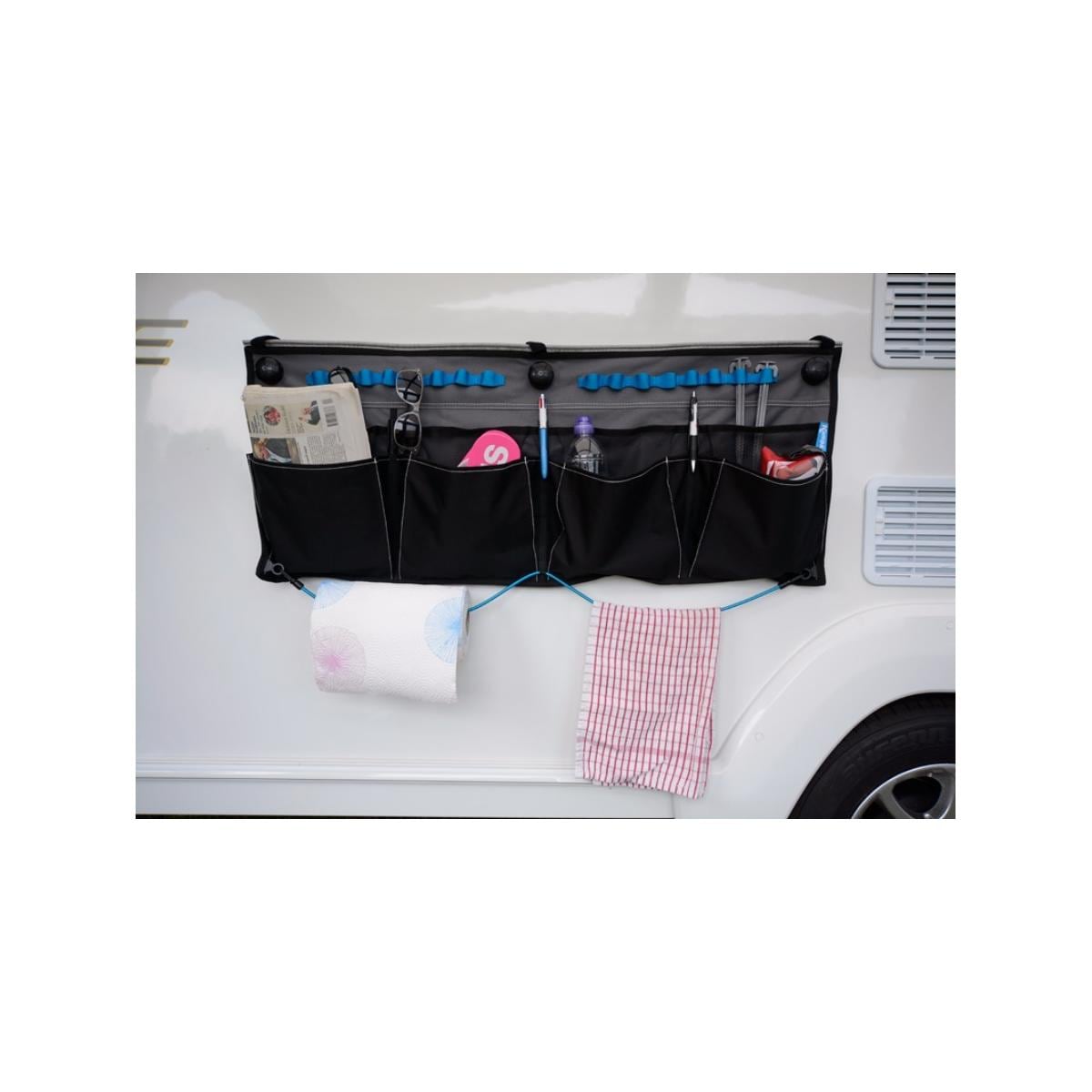 Finden Sie immer, was Sie brauchen. Der Organizer bietet vielseitigen zusätzlichen Stauraum, wo Sie ihn brauchen, und hilft, Ihren Campingraum ordentlich und organisiert zu halten. 4 Netz-Organizer-Taschen 4 strapazierfähige Polyestertaschen 3 Stifthalter 2 Gurtbandhalterschienen 2 integrierte Küchenrollenhalter Technische Daten: Maße: 99 x 41 cm Am besten gleich passende Befestigung mitbestellen: Dometic Limpet Fix Kit