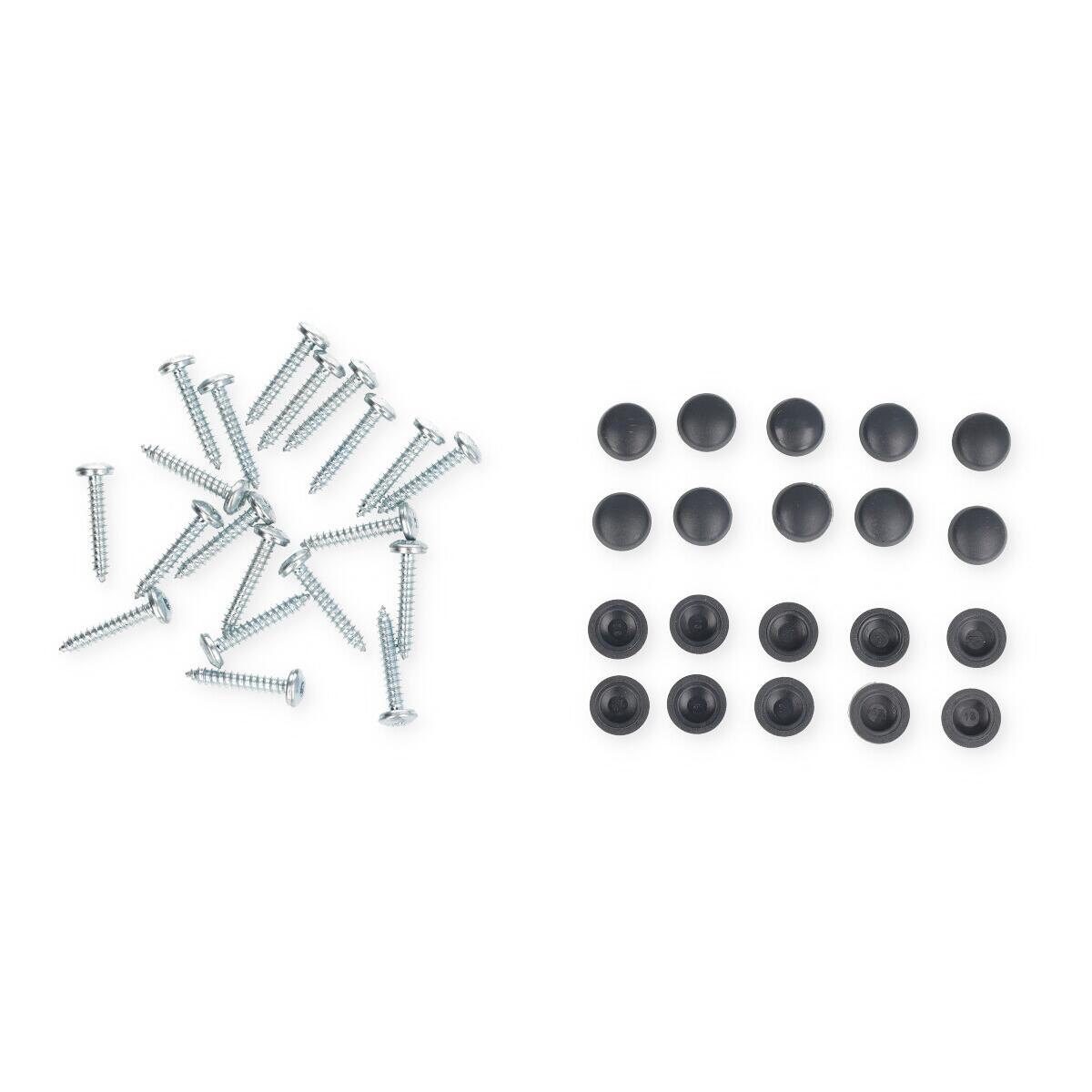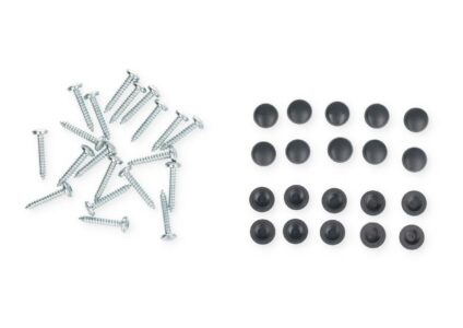 Kappenschrauben zur Befestigung der Innenverkleidungsplatten – mit 3,2 mm Bohrer vorbohren. Für Holz und Blech. Verzinkt, Kreuzschlitz, Rundkopf, Größe: 3,9 x 22 mm. Schrauben incl. Abdeckkappen, 20 Stück. Mittelgrau