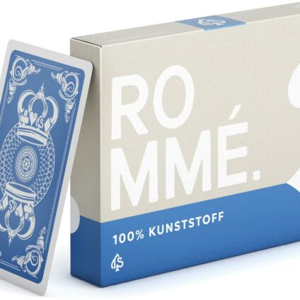 Hochwertige, wasserfeste und abwaschbare Spielkarten aus 100 % Kunststoff. Die Kunststoffkarten sind reiß- und knickfest und liegen gut in der Hand. Die Haltbarkeit im Vergleich zu Papier oder Leinenkarten ist bis zu 30 Mal höher. Weitere Spielmöglichkeiten wie z.B. Rommé, Canasta, Bridge, Poker, Skat, Doppelkopf und Mau Mau. wasserfest und abwaschbar reiß- und knickfest französisches Bild nicht für Kinder unter 3 Jahren geeignet Technische Daten: Material: Kunststoff Maße: 12,2 x 9,5 x 2 cm Inhalt: 2 x…