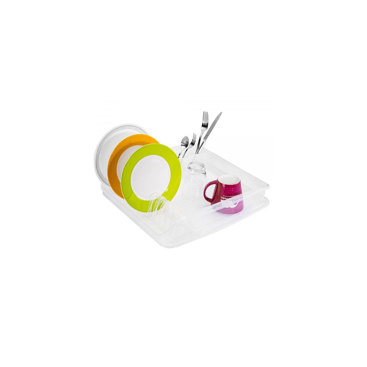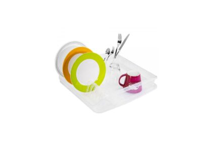 Der Geschirrablaufkorb mit Tablett schafft Ordnung selbst beim Abspülen. Und das auf einer überschaubaren Fläche. Technische Daten: Maße (B x T x H): 39,5 × 39,5 × 8 cm Gewicht: 585 g