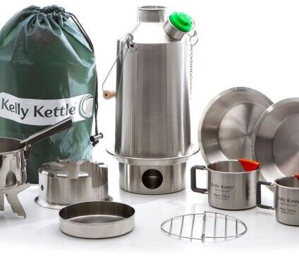 Das Ultimate Base Camp Kit Edelstahl lässt keine Wünsche offen. Das Set aus rostfreiem Edelstahl beinhaltet ein komplettes und vielseitiges Koch- und Essgeschirr für zwei Personen. Die Grundlage des Sets ist der Wasserkessel mit 1,6 L Fassungsvermögen (ergibt ca. 6 Tassen) der auf dem dazugehörigen Feuerstand platziert wird. Darin können ganz einfach umliegende Zweige und Äste zum Anfeuern verwendet werden. Der integrierte Pfeifdeckel läutet wenn das Wasser in der Kanne kocht. Außerdem beinhaltet das…