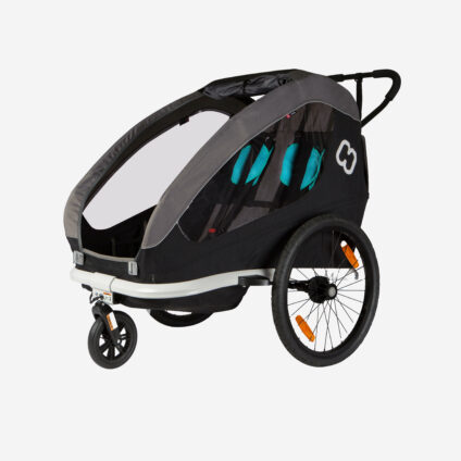Für den sicheren Transport von bis zu zwei Kindern, ob im Fahrradanhänger oder zu Fuß im Jogger.