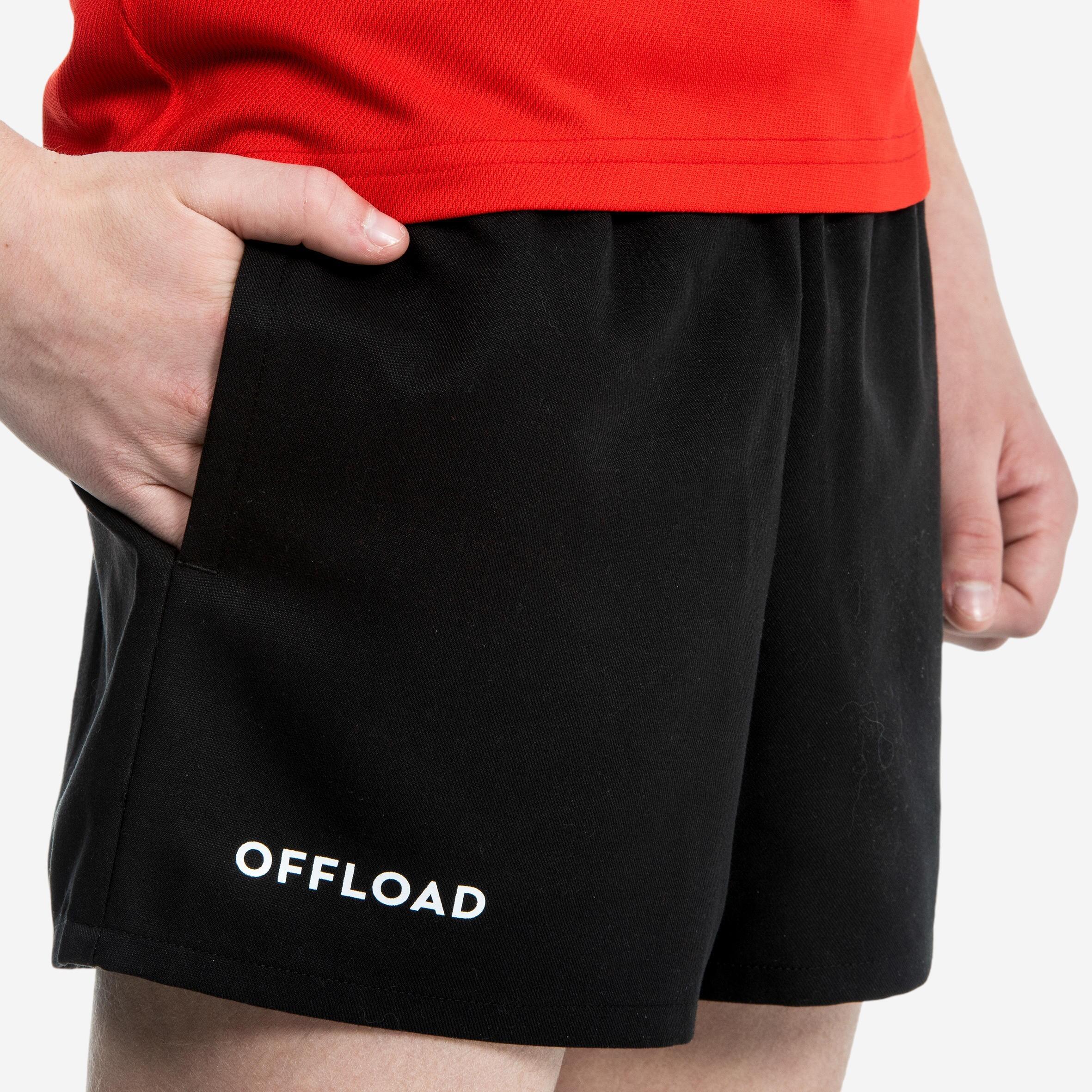 Reißfestigkeit::Reißfestes und abriebfestes Material|Bewegungsfreiheit::Die kurzen Rugbyshorts passen sich an verschiedene Körperformen an.|Nutzerkomfort::Weiches Material, Taillenbund und Kordelzug sorgen für Tragekomfort beim Spiel.|Einfache Instandhaltung::Maschinenwaschbar bei 40 °C. schnelltrocknend